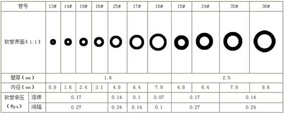 9、流量范圍:?每種軟管對應(yīng)固定的轉(zhuǎn)速范圍,我們根據(jù)客戶的需要的流量范圍選擇相應(yīng)軟管。具體數(shù)據(jù)見各種軟管流量范圍對照表: