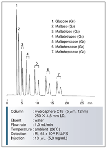 迄今為止,大多數(shù)糖類的分離介質(zhì)僅僅局限在分析級(jí)別,但是富士硅膠研發(fā)出用于制備色譜的新的氨基硅膠。當(dāng)使用高水相為流動(dòng)相時(shí),一般的氨基填料會(huì)暴露出很多問(wèn)題。氨基硅膠的pH值很高,一般pH為9.0,在這樣高的pH條件下,目標(biāo)化合物一般都會(huì)變性,并且會(huì)毀壞硅膠基質(zhì)的表面??紤]到這些問(wèn)題,富士公司研發(fā)出新的氨基硅膠填料,稱之為NH SG硅膠。NH SG硅膠可以最小化甚至是避免上述問(wèn)題,并且對(duì)糖類化合物進(jìn)行更好的分離。