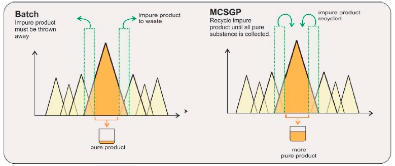 MCSGP工藝,可將含有不純組分的產(chǎn)品回收在一個封閉的環(huán)內,進行循環(huán)式的層析操作,從而最大限度地提取純產(chǎn)品,使得收率和純度二者兼得。