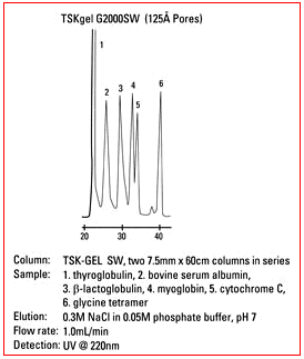 1. TSKgel SW-型填料由含二醇基官能團(tuán)的剛性球形硅膠顆粒組成。