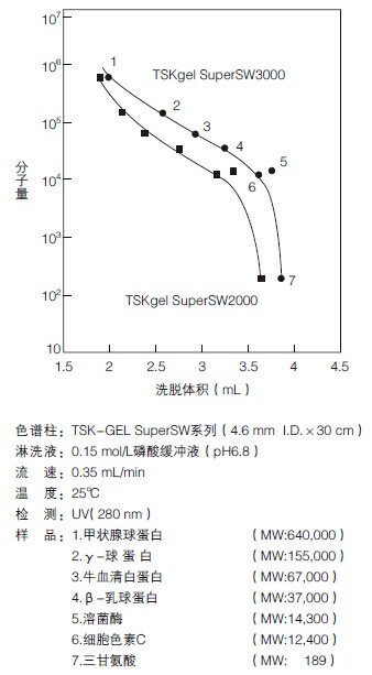 TSKgel SuperSW柱的蛋白質校準曲線