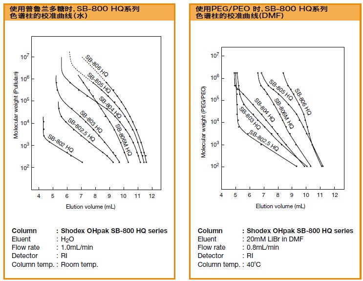 OHpak SB-800 HQ色譜柱的校準曲線