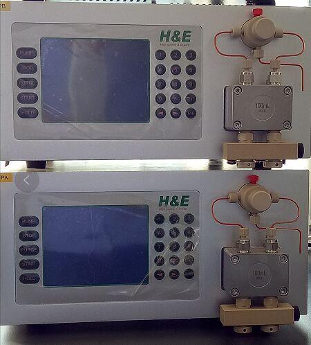 柱塞泵是目前液相色譜主流的輸液?jiǎn)卧貏e是雙柱塞往復(fù)泵。它有一個(gè)精心設(shè)計(jì)的偏心凸輪,用同步電機(jī)或變速直流電機(jī)驅(qū)動(dòng)偏心凸輪,偏心凸輪再推動(dòng)兩活塞作往復(fù)運(yùn)動(dòng)。偏心凸輪短半徑端所對(duì)應(yīng)的活塞向外伸,使該活塞的下單向閥打開(kāi)吸入流動(dòng)相,與此同時(shí),偏心凸輪的長(zhǎng)半徑端所對(duì)應(yīng)的另一活塞被推入,使其上單向閥打開(kāi),并將流動(dòng)相送至色譜柱。具有操作方便、流速穩(wěn)定、壓力脈動(dòng)小、故障率低的優(yōu)點(diǎn)。根據(jù)流量大小一般可分為分析型和制備型。