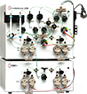 柱塞泵是目前液相色譜主流的輸液單元,特別是雙柱塞往復(fù)泵。它有一個(gè)精心設(shè)計(jì)的偏心凸輪,用同步電機(jī)或變速直流電機(jī)驅(qū)動(dòng)偏心凸輪,偏心凸輪再推動(dòng)兩活塞作往復(fù)運(yùn)動(dòng)。偏心凸輪短半徑端所對(duì)應(yīng)的活塞向外伸,使該活塞的下單向閥打開吸入流動(dòng)相,與此同時(shí),偏心凸輪的長半徑端所對(duì)應(yīng)的另一活塞被推入,使其上單向閥打開,并將流動(dòng)相送至色譜柱。具有操作方便、流速穩(wěn)定、壓力脈動(dòng)小、故障率低的優(yōu)點(diǎn)。