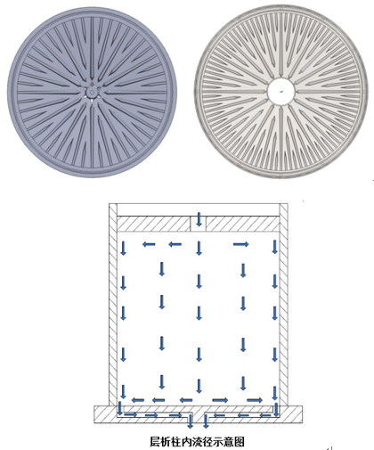分配器按照現(xiàn)代機(jī)械設(shè)計(jì)先進(jìn)理念進(jìn)行的,流體動(dòng)態(tài)仿真、優(yōu)化設(shè)計(jì)、可靠性設(shè)計(jì)、虛擬設(shè)計(jì)、三維造型、產(chǎn)品全壽命周期設(shè)計(jì),使得產(chǎn)品性能得到有一種單一的中央噴口和一種徑向?qū)Я鞑?。防直噴的噴口與導(dǎo)流槽做在了一起,定位在每個(gè)單元的中心,防止噴出的液體直接進(jìn)入柱管而不通過(guò)分配器。獨(dú)特的分配器設(shè)計(jì),保證所有流徑長(zhǎng)度相同,從而更有效地保證分配效果。