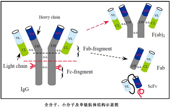 抗體的Fab區(qū)域含可變區(qū)和恒定區(qū),可以與特異的抗原結合,F(xiàn)ab抗體片段藥物有更好的穿透力。只含有一個Fab臂,分子量在~50kDa。Centocor公司的ReoPro(abciximab)是重組嵌合Fab抗體片段。