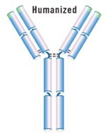 用人IgG的恒定區(qū)取代小鼠IgG的恒定區(qū),保留鼠單抗的可變區(qū)序列,形成一個人-鼠雜合的抗體。例如:Idec?pharmceutical,Genentech的小鼠抗CD20抗體,含人IgG1恒定區(qū),用于治療B淋巴瘤。