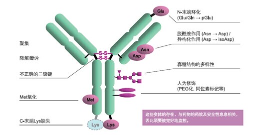 ????抗體是一種結(jié)構(gòu)復(fù)雜的糖蛋白。即使是天然抗體,其結(jié)構(gòu)也是各不相同??贵w類藥物在其生產(chǎn)工藝(培養(yǎng)、分離純化)或貯存過(guò)程中容易導(dǎo)致產(chǎn)品的不均一性,所以在藥物研發(fā)以及純化、生產(chǎn)過(guò)程中,對(duì)抗體藥物的定量和定性的分析時(shí)非常重要的。