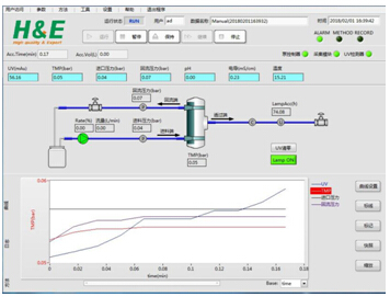 2)可設(shè)置進(jìn)料壓力、TMP及透過端UV報(bào)警值,超出范圍即停泵,防止目標(biāo)物損失,保證工藝可控性。