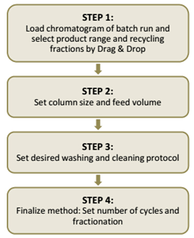 MCSGP向?qū)к浖勺詣?dòng)計(jì)算回收階段的在線(xiàn)稀參數(shù),并可顯示所需進(jìn)料的總體積、溶劑和運(yùn)行時(shí)間等。