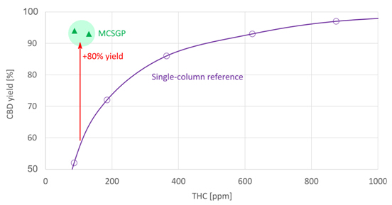 1. 在THC含量要求100 ppm時(shí),MCSGP可使CBD收率提高80%左右;